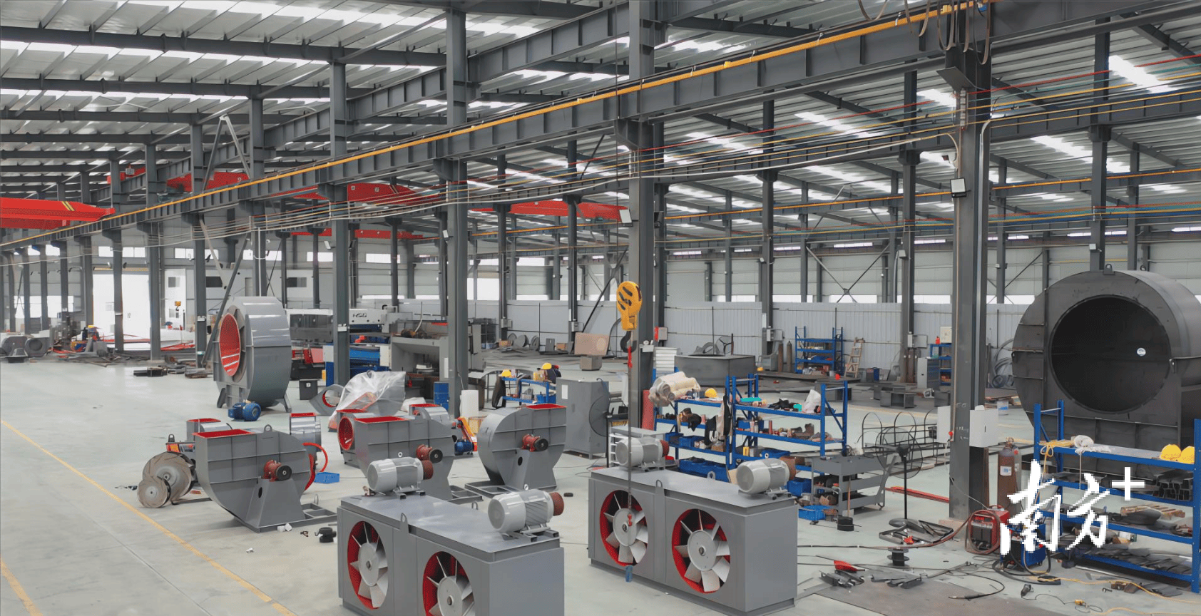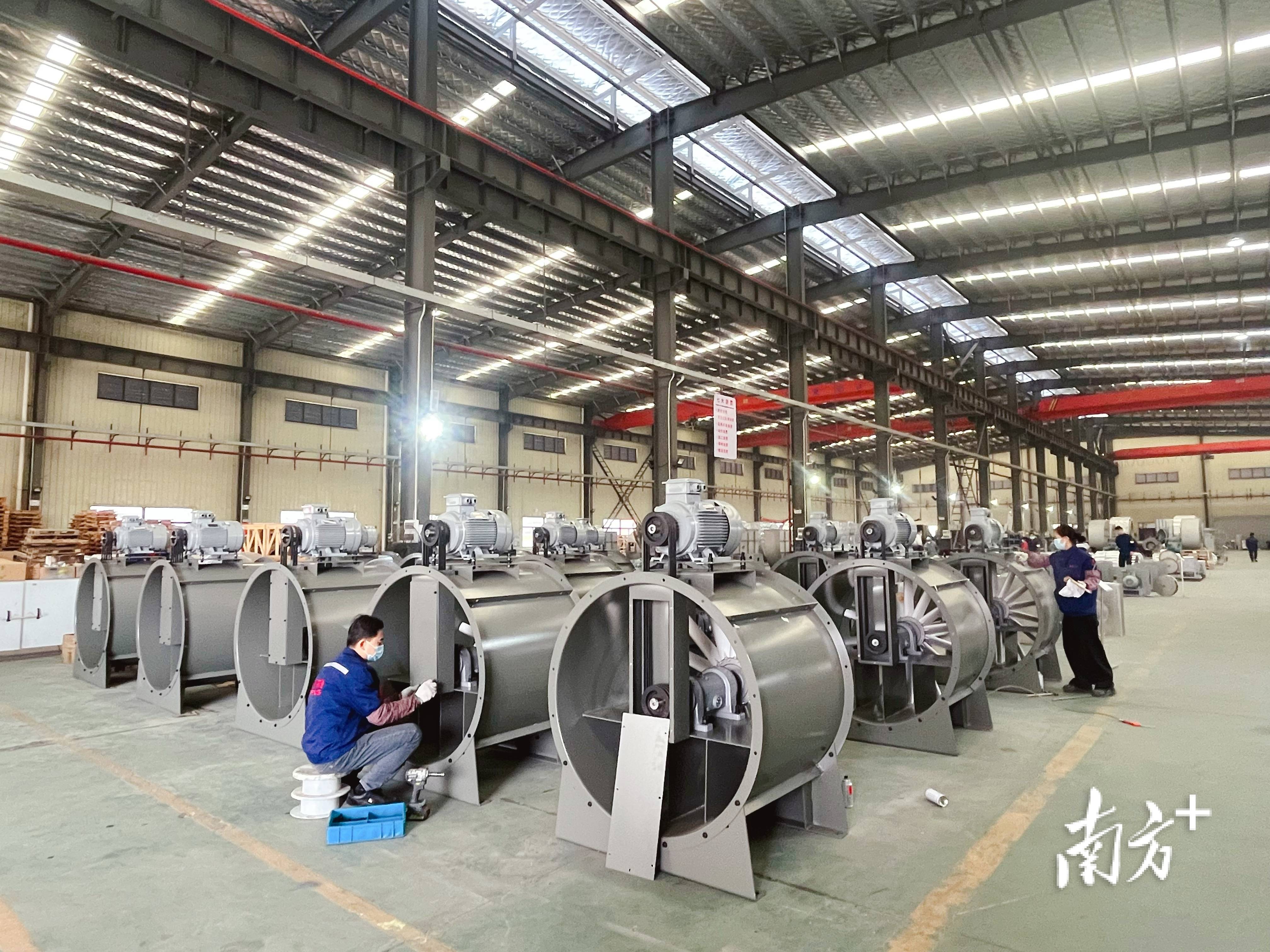 鑫风风机自2020年从广州番禺搬迁落地德庆工业园,工业产值“翻三番”。南方+ 刘舜欣 摄
