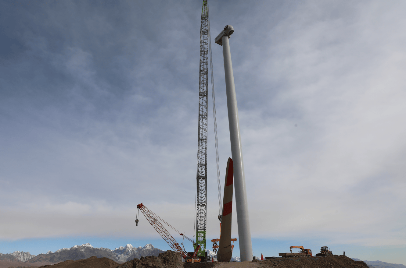 华能阿合奇风电项目经理董国强说:“风速超过每秒8米就必须停止,我们必须与天气‘抢时间’。”在首台风机吊装当天,他和同事在海拔3200米的作业平台上全程值守,每10分钟监测一次风速,最终成功将单台吊装时间压缩至一天,实现了高海拔复杂环境下的技术突破。