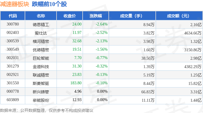 从资金流向上来看,当日减速器板块主力资金净流入5.39亿元,游资资金净流出4.63亿元,散户资金净流出7628.42万元。减速器板块个股资金流向见下表: